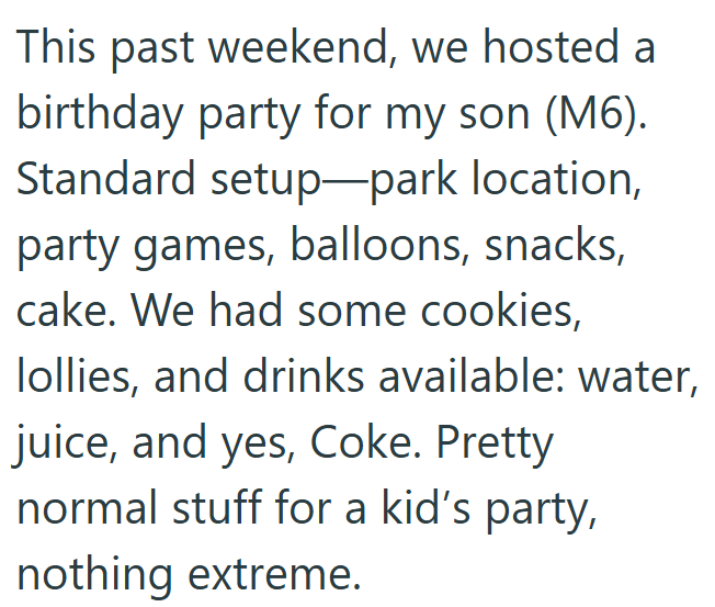 Parents berate mom for feeding their kids cake and soda at her son's 6th birthday party: 'If you don’t stay at the party or say anything about dietary restrictions, can you really be upset afterward?'