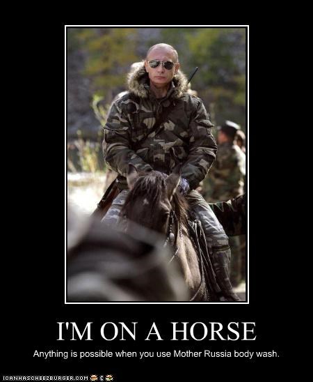 I'm on a horse. Anything is possible when you use Mother Russia body wash. (Vladimir Putin)