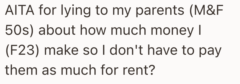 That's what happened to this young woman whose parents tried to find every way to squeeze her for cash. What started out as a somewhat reasonable situation turned into an untenably expensive one. But when she concocted a white lie to help ease the pressure, she wasn't sure whether or not she did the right thing.