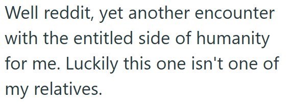 Ok this has already started off rather saucy. How is this person so unlucky in life that they have had the misfortune of posting what seems several times already about entitled people, and that those people were their family? Welp, as much as we don’t like to say it, looks like more bad news is on the way…