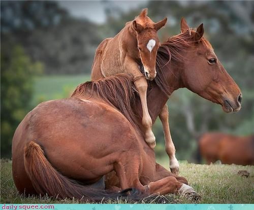 Mama horse is tired, I'll help you find someone else to play with. I think it won't be difficult to find volunteers for such a squee foal like you. -Sally Squeeps