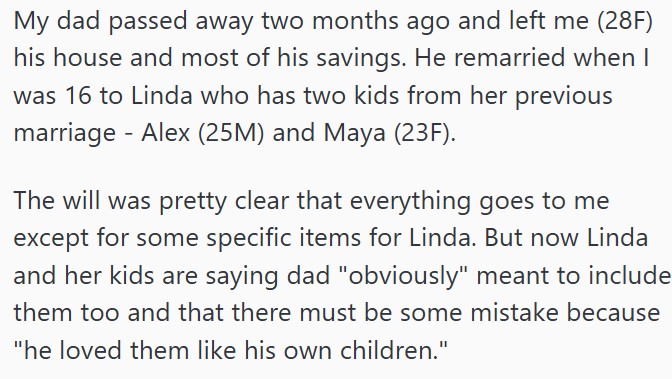 28-year-old receives inheritance from late father, stepmom insists she share it with her younger stepsiblings: 'Dad put both of them through college while I paid for mine myself'