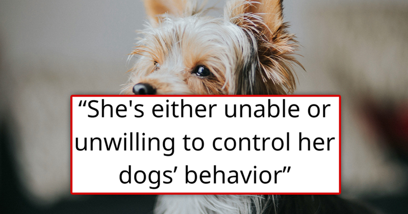 It is entirely fair to ask the mother to not bring her dogs if she cannot control them, but we have to say that we understand her bring upset about it when other dogs are allowed. We would consider, again, making this a pet-free vacation for the family.