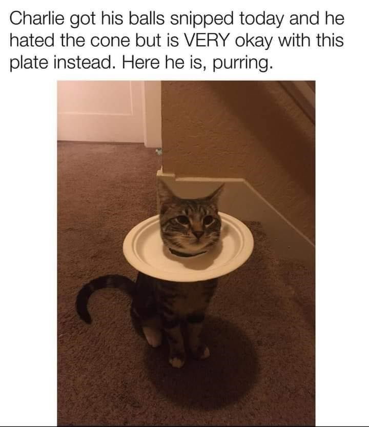 Well, of course he would be. The cone is a fashion nightmare, maybe only acceptable as a part of an outfit which provided social commentary about cats being put in shelters. But the plate, the plate, is a fashion statement that brings the Jacobean ruff forward to the 21st century. It is bold, on trend and utterly stunning.