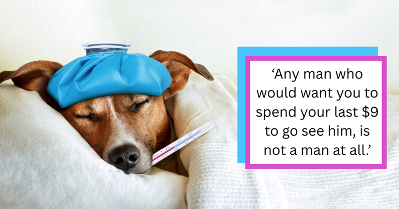 If you can't understand that the dog's health comes before seeing you, then we might as well just end it here. This man is lazy and childish. What does he bring to your relationship? It better be really good if you're willing to put up with this kind of attitude.