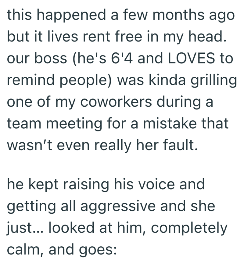 "My coworker told our boss, “You’re not intimidating, you’re just tall and loud,” and I still think about it