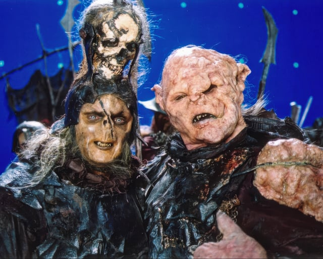 We believe they call this a gaggle of Gandalf's. Otherwise, known as Gandalf (pictured center) posing with his stunt crew. Though one has to wonder how and why they employed an absolutely ginormous Gandalf. Maybe he stood in for shots that made Gandalf look much taller than the other Hobbits.