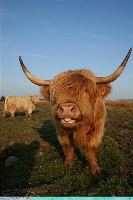 Hi cow! You sure look happy to see us... can you even see us with that long hair? -Sally Squeeps