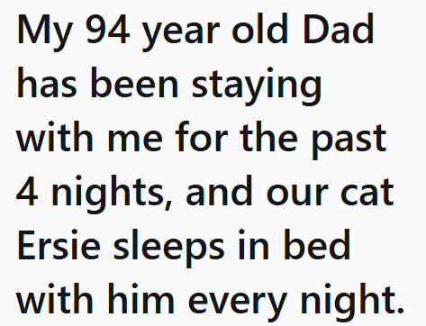 94-year-old dad visits his son, the family cat won't leave his side and sleeps in his bed every night like a fluffy feline guardian: ‘We think he knows that he needs extra support’