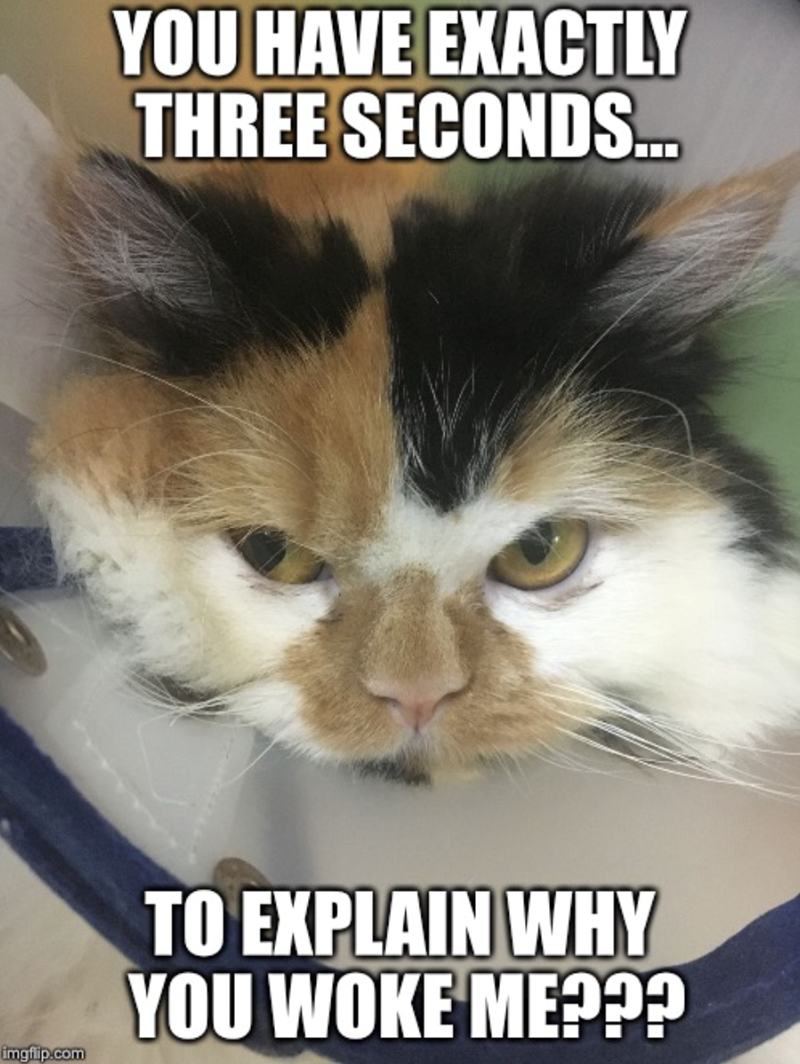Tired cats will drag themselves out of bed and face the day, but don’t expect purrs or playful cuddles. They’re grumbling internally and every step is a begrudging act of feline endurance.