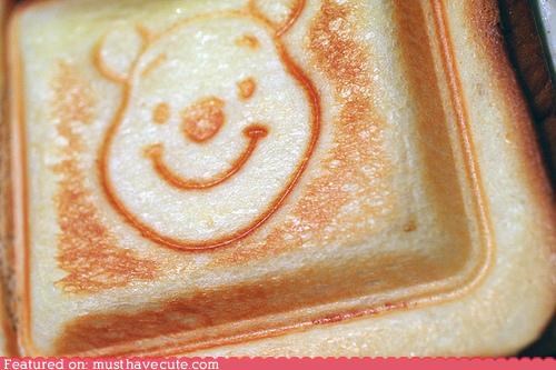 I think this is maybe some sort of sandwich pressed in a special Winnie the Pooh sandwich maker? What's in there I wonder? Nutella and peanut butter? Hot dogs and cheddar? pickles and ham? Is it lunchtime yet?