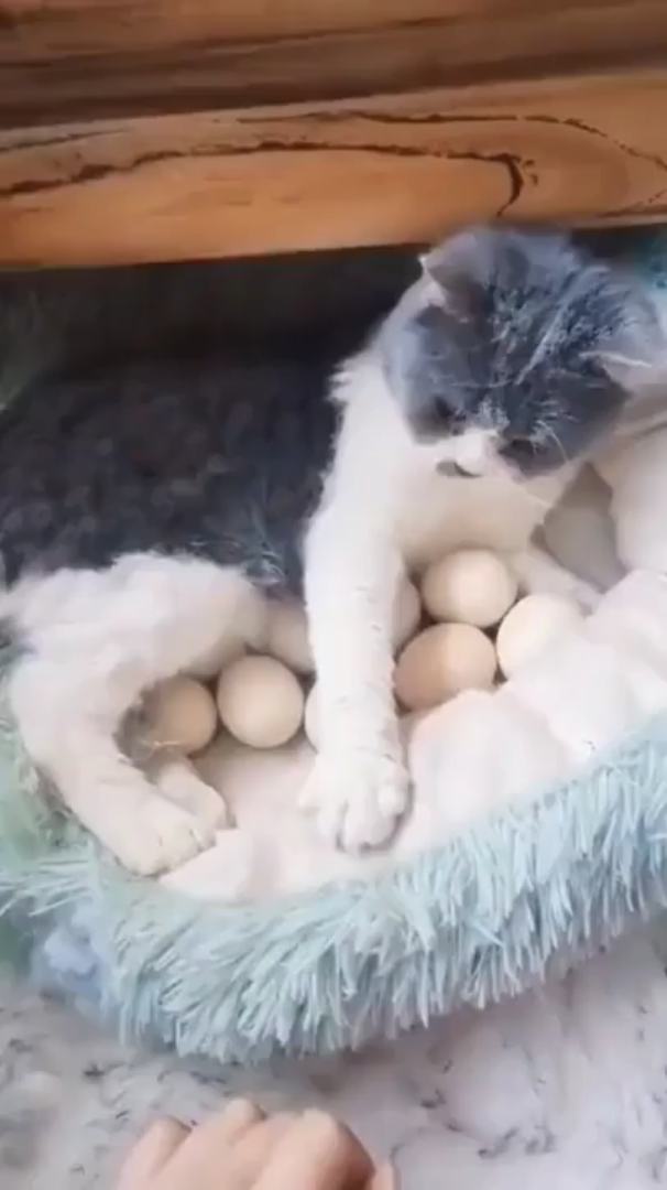 "This cat protects the eggs, warms them, hatches them, raises the chicks, and then becomes their lifelong friend"