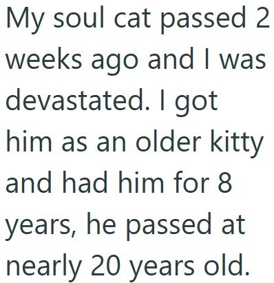 Yikes, yeah that is a heck of a lot to deal with especially at just a few weeks after having parted ways with your soul cat. Not to mention that this lady thought it would be a good idea to take on a cat who is also senior in age and might at best have another 5-6 years left in him before she has to go through this heart-wrenching process all over again.