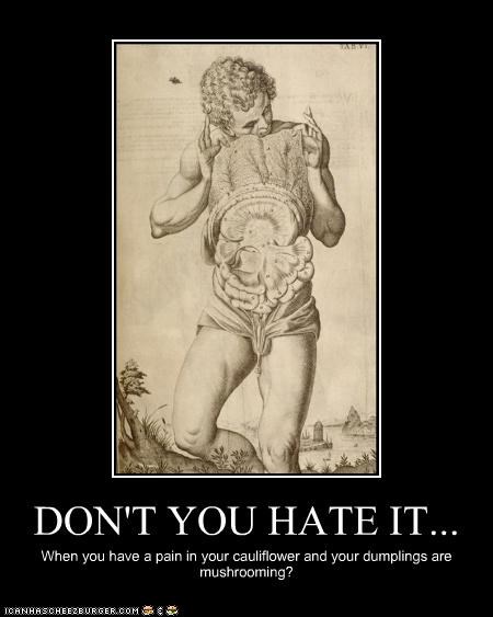 DON'T YOU HATE IT... when you have a pain in your cauliflower and your dumplings are mushrooming?