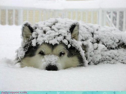 This wolf has found himself adrift in a sea of snow. We should bring him some hot cocoa and help him thaw out! - Sally Squeeps