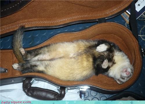 Laura says: "My ferret Potato claims my ukulele case while it's empty."