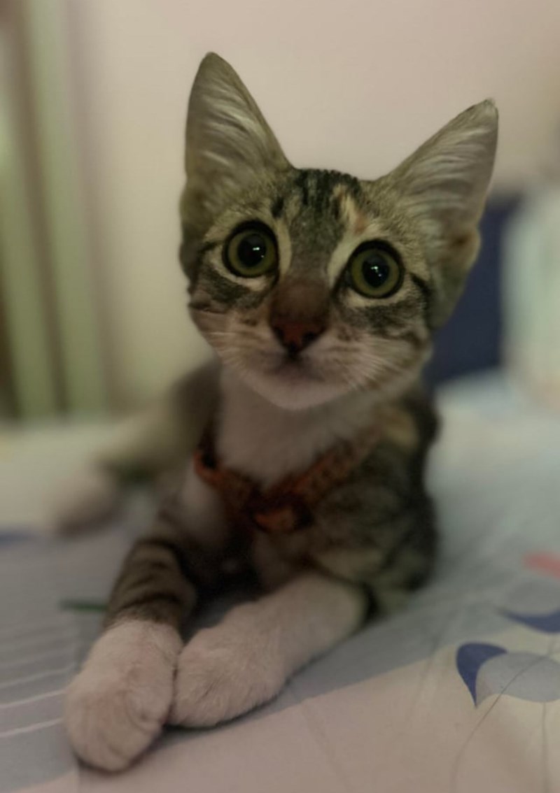 Sometimes, you adopt a cat, and sometimes, the cat adopts you. This wise little cat, named after the Greek Goddess of wisdom, knew that she'd find her forever home if she followed these non-local hoomans around. So wise!