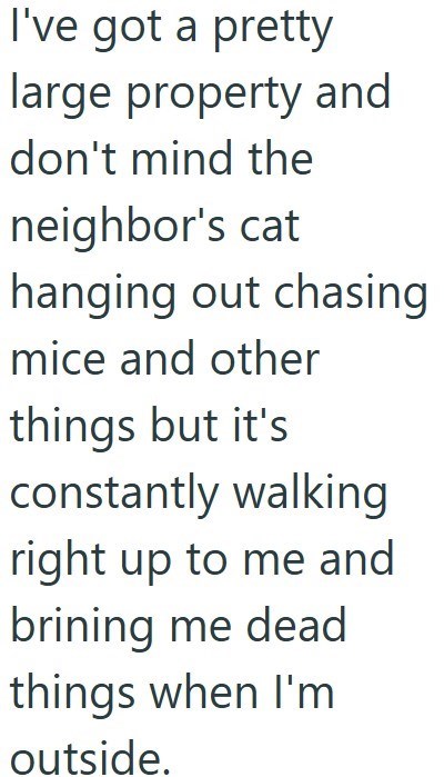 Ok, fair enough, this is a legitimate concern and no one particularly wants to become a volunteer mortician. So we can somewhat understand why this person is so averse to this cat bringing him presents every day. But still, they are presents, as cumbersome as they might be.