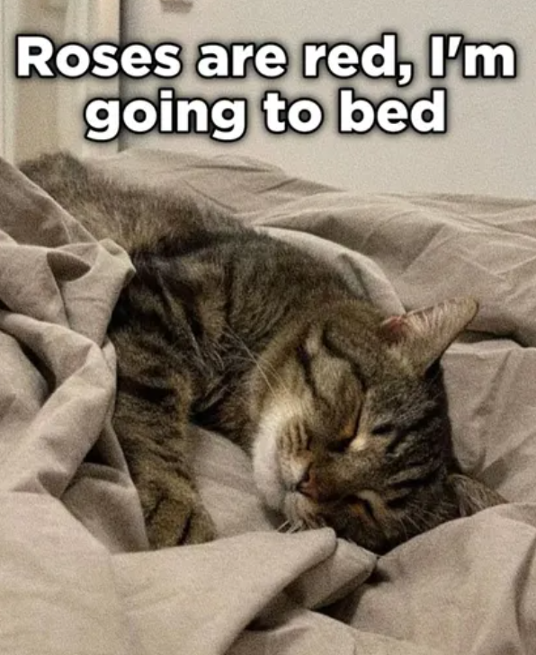 Roses are red, I'm going to bed.