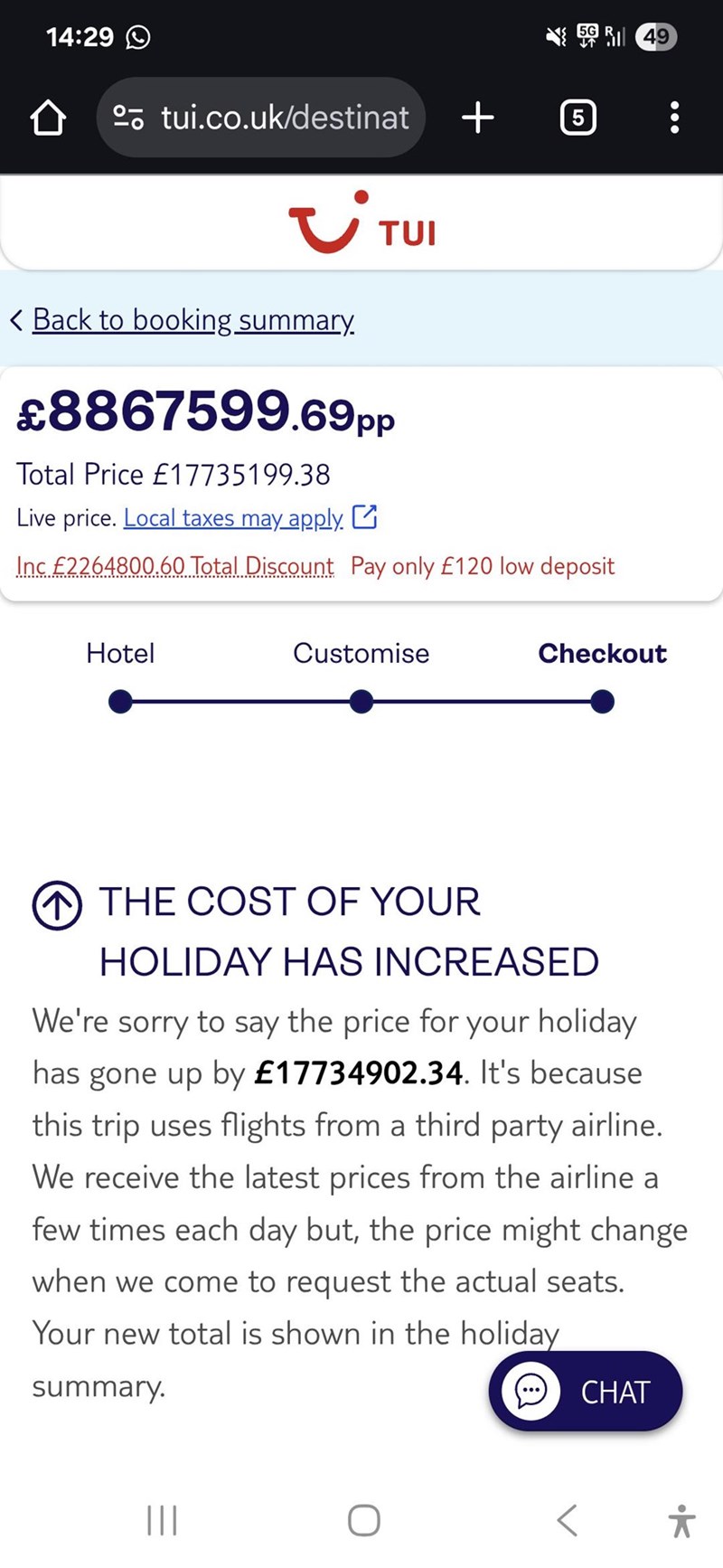 'Booking a little get away for the wife and I... "We're sorry to say the price for your holiday has gone up"'