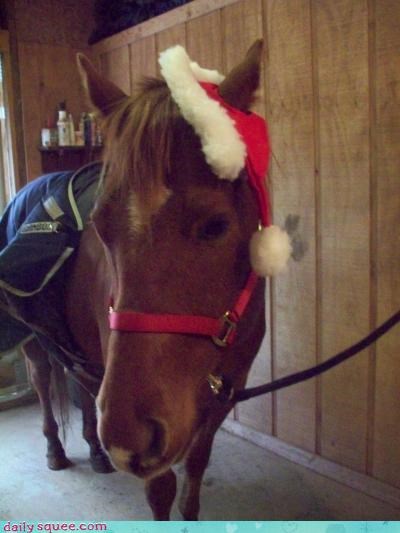 StrictlyKaty says: "This is my horse Houdini at Christmas time, sporting his festive Santa hat to keep his little ears warm!"