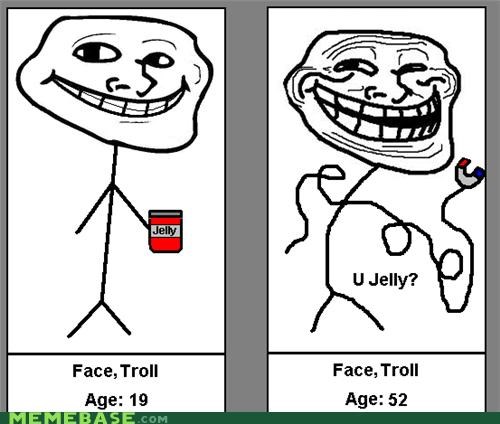 This is a picture showing troll face when he was 19, and how he is now, 52.