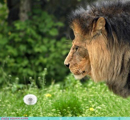 That is one dandy lion, solemnly beholding a dandelion. -Sally Squeeps