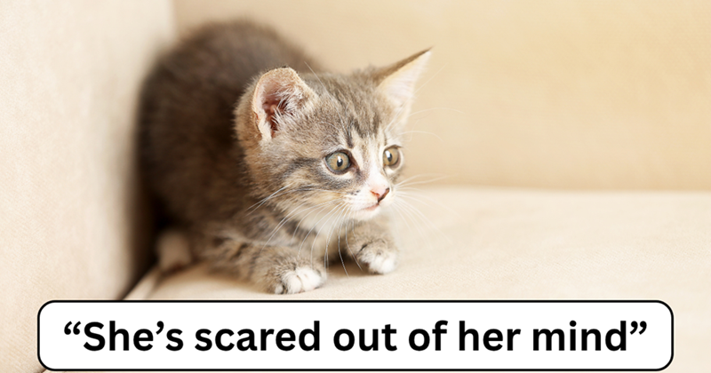 Kitten is scared out of her mind
