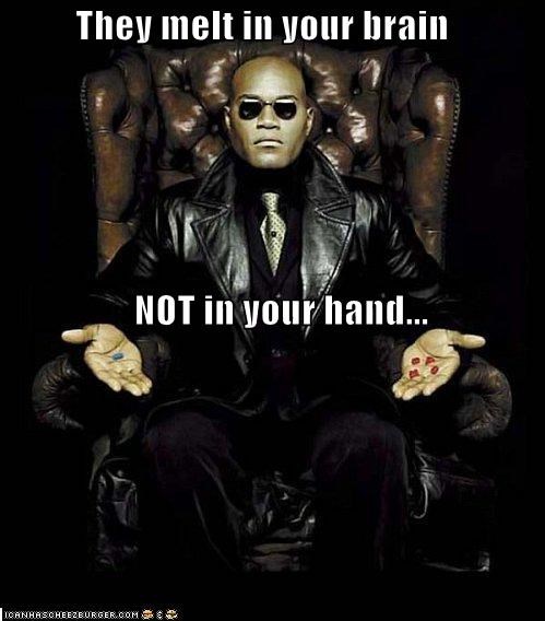 They melt in your brain NOT in your hand... -Laurence Fishburne