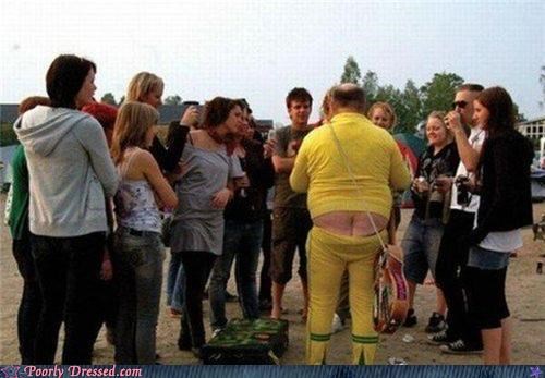 Guys in all yellow...they really know how to party don't they. Really makes you wonder about the man with the yellow hat.