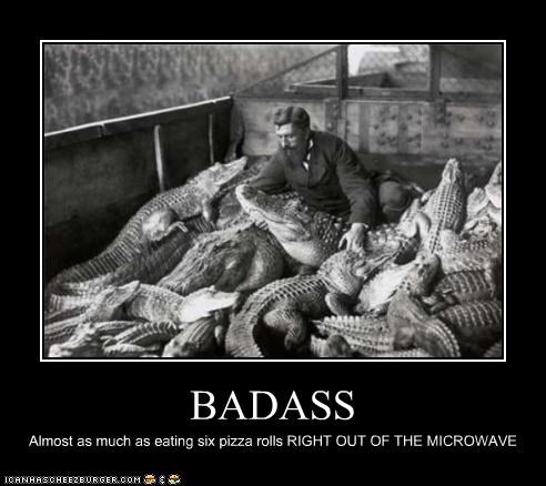 BADASS. Almost as much as eating six pizza rolls RIGHT OUT OF THE MICROWAVE.