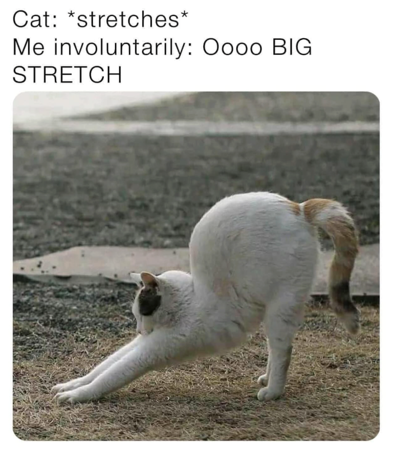No matter the size of the cat, the stretch is always dramatic. Tiny kitten or chunky floof, every stretch looks like the most important part of their day.