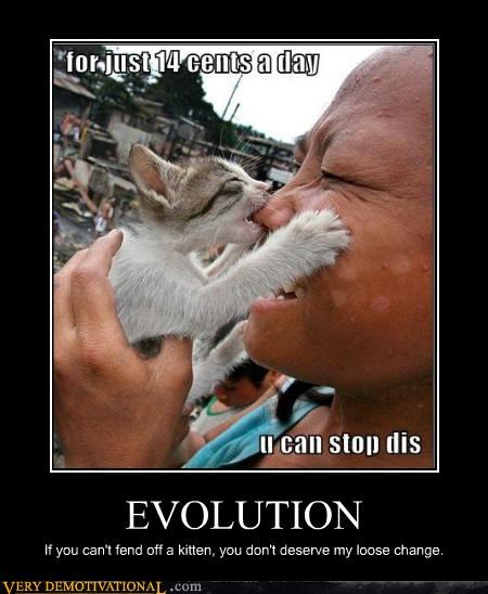 EVOLUTION If you can't fend off a kitten, you don't deserve my loose change.