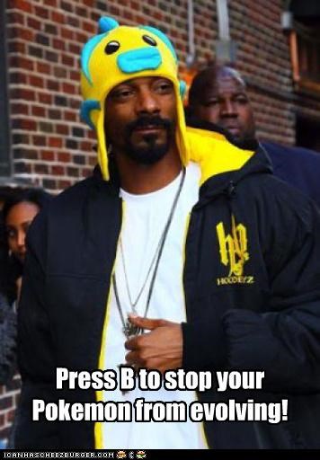 Press B to stop your Pokemon from evolving! (Snoop Dogg)
