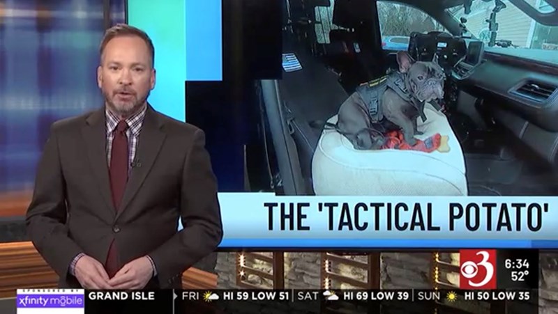 If you zoom in, his K9 vest is full of howlarious little details. Fur example, instead of saying K9, it says “K8.5”. He's probably more of a K4 when you compare him to the other dogs on the K9 unit, but we don't have the heart to tell him.