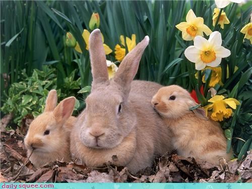This mother should be proud of her two super squee, daffodil-colored baby bunnies!