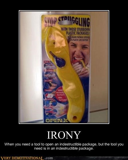 IRONY when you need a tool to open an indestructible package, but the tool you need is in an indestructible package.