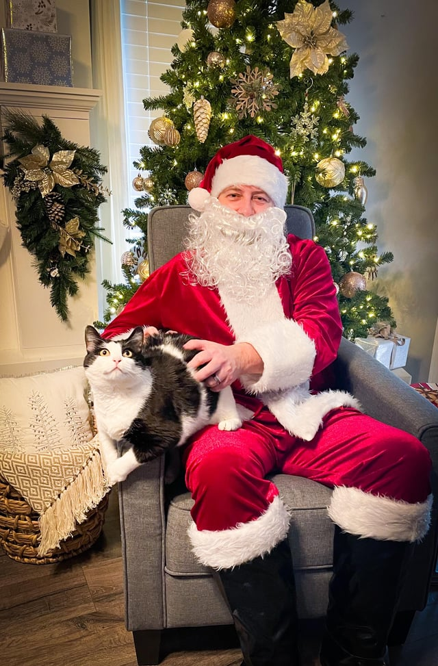 Just like hooman children, cat children have different kinds of comfort levels around Santa Claus. Some take to him as though he is their own pawrent, while others need a little distance from the strangely dressed stranger trying to touch them…