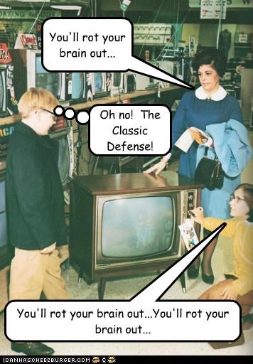 You'll rot your brain out... Oh no! The classic defense! You'll rot your brain out...You'll rot your brain out...