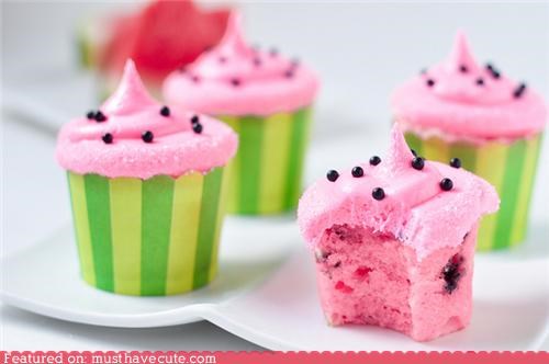 I'm dreaming of summertime over here, and a watermelon cupcake certainly helps. The coolest thing about these is that they are watermelon flavored! I can't really imagine what that would taste like but I bet it's amazing. Talk about a well executed idea. Bakingdom rules!