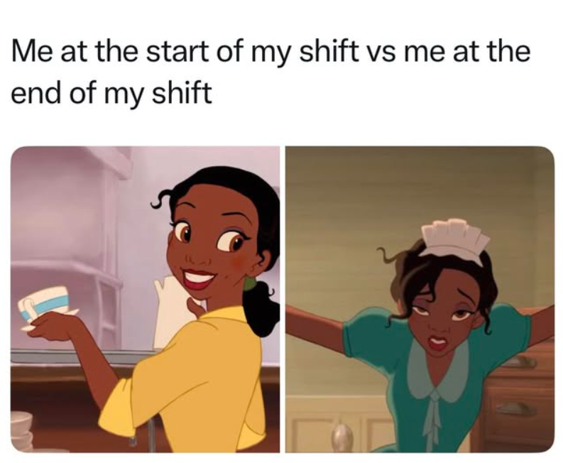 Me at the start of my shift vs me at the end of my shift
