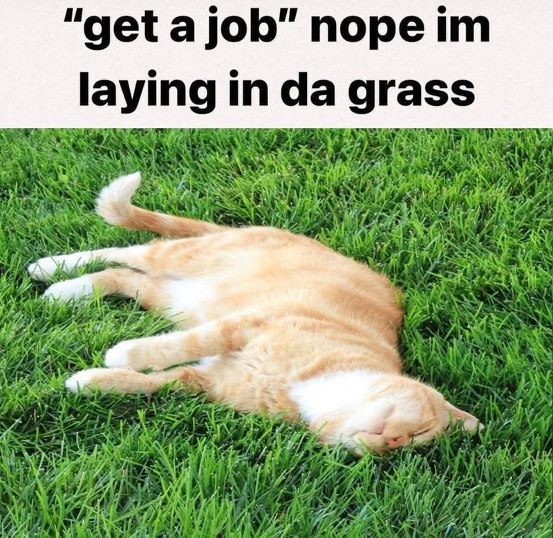 Oh, to be a cat lying in the grass, with no worries besides “When's the next snack time?”, or “Should I start zoomies at 3 or 4 AM tonight?”. Such simple life, such chill existence.