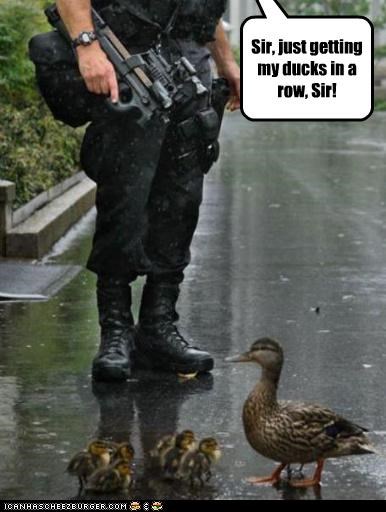 (A soldier and a family of ducks)