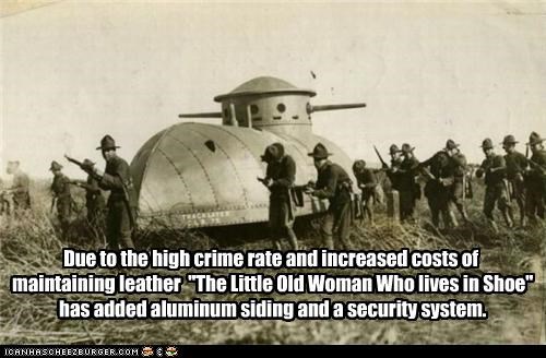 Due to the high crime rate and increased costs of maintaining leather "The Little Old Woman Who live in Shoe" has added aluminum siding and a security system