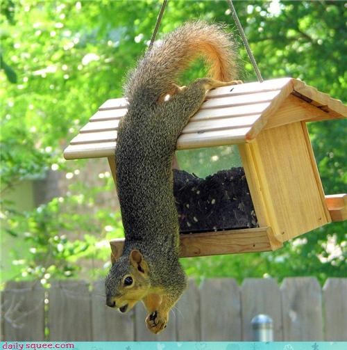 Oh hello! Don't mind me, just grabbing a little snack... This is for the birds, you say? Um, well... Tweet! Tweet! - Sally Squeeps