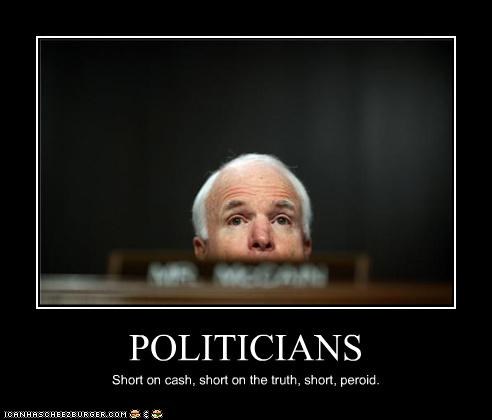 POLITICIANS Short on cash, short on truth, short, period.