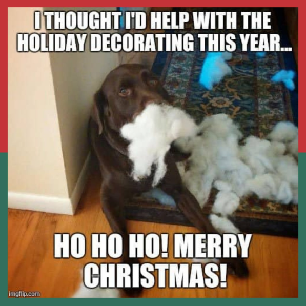 Of course this doggo didn't see any of your Christmas cookies - they're all on his nose. Dogs don't see with their noses! Don't be silly, you clueless hooman, it just means you need to make a new batch of Christmas cookies. And make more to your dog, obviously.