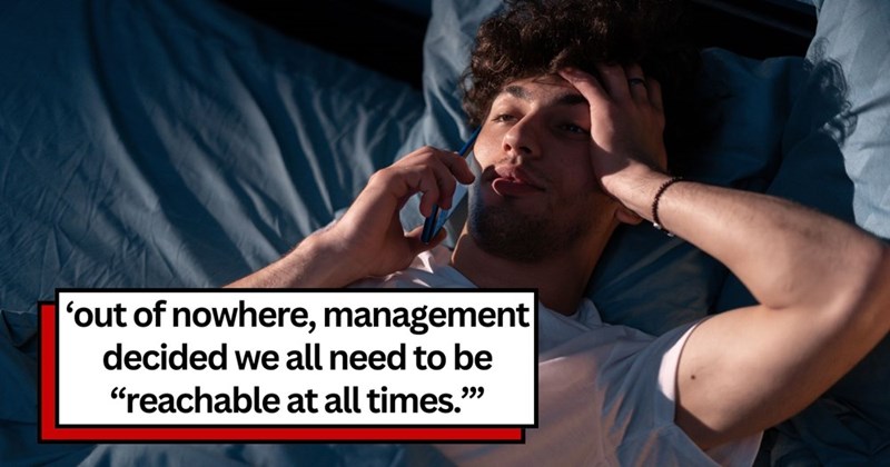 Management demands 24/7 availability without extra pay for routine work that could wait until Monday, and pulls employee into meetings, criticizing his lack of responsiveness: ‘There’s no emergency, and no contract that says I owe them my free time’