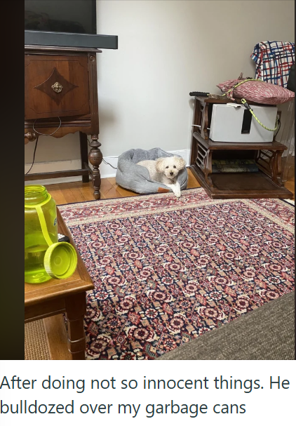 That tiny thing bulldozed garbage cans? Like, full garbage cans that have some weight to them? We are kinda shocked to be honest, though it is not totally unexpected. After all, when in a state of zoomie madness there is not a lot that a doggo cannot do. And with just the right slipperyness of the floor it is not totally unreasonable that this pupper would end up crashing into the garbage cans.