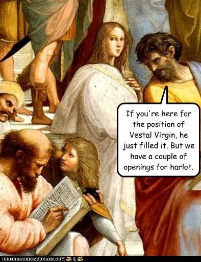 If you're here for the position of Vestal Virgin, he just filled it. But we have a couple of openings for harlot.